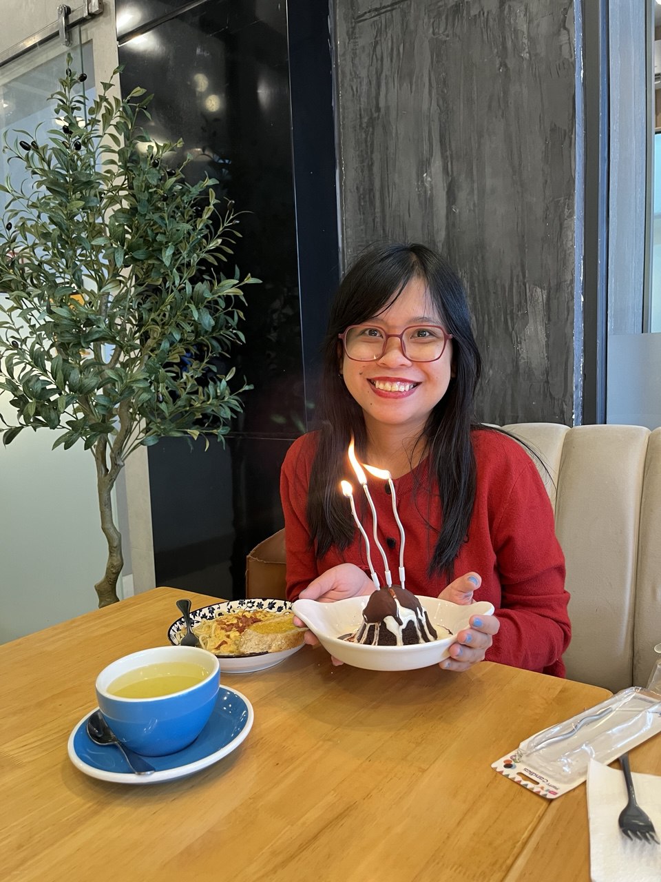 Aside from buying myself a nice bottle of wine and a huge Toblerone, and lighting some birthday candles for my birthday wish, I just stayed home with my dogs—reading, playing games, watching anime, writing myself a letter, cooking my favorite food, watching my sunlit room, and visiting an old favorite café in town. These are all normal things that I do on normal days, but these are also the things that make me happy. And it is enough 😊